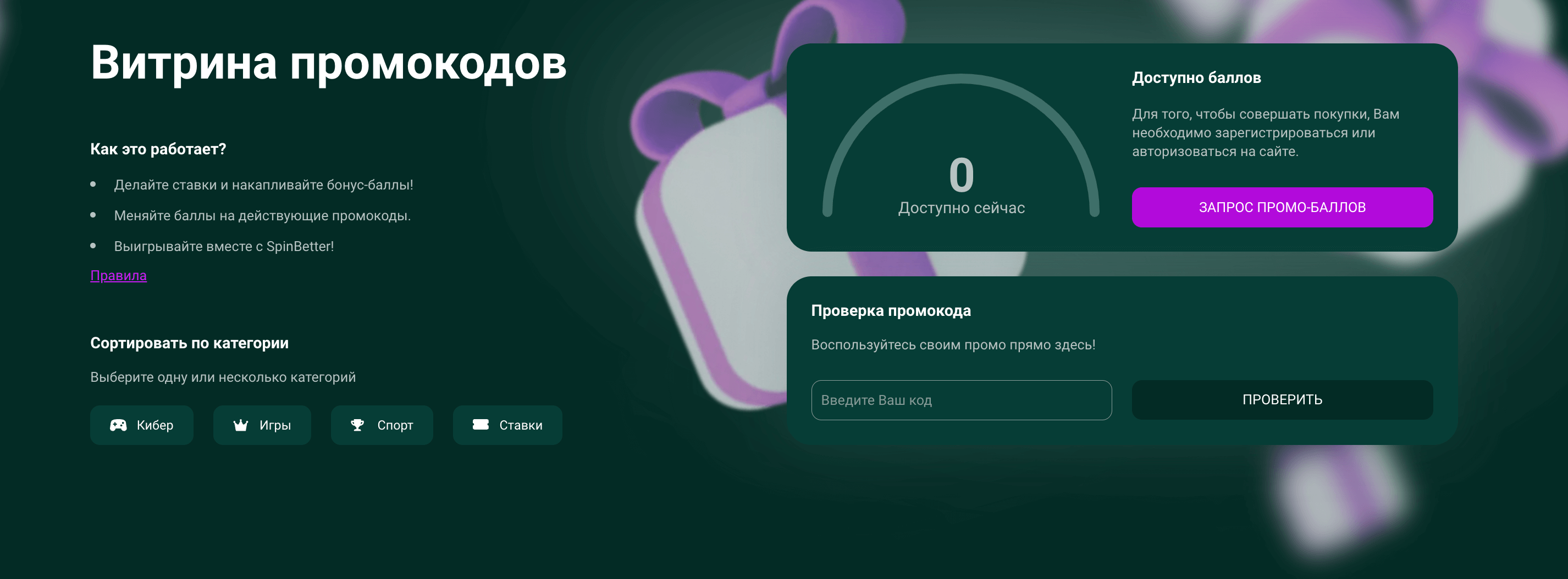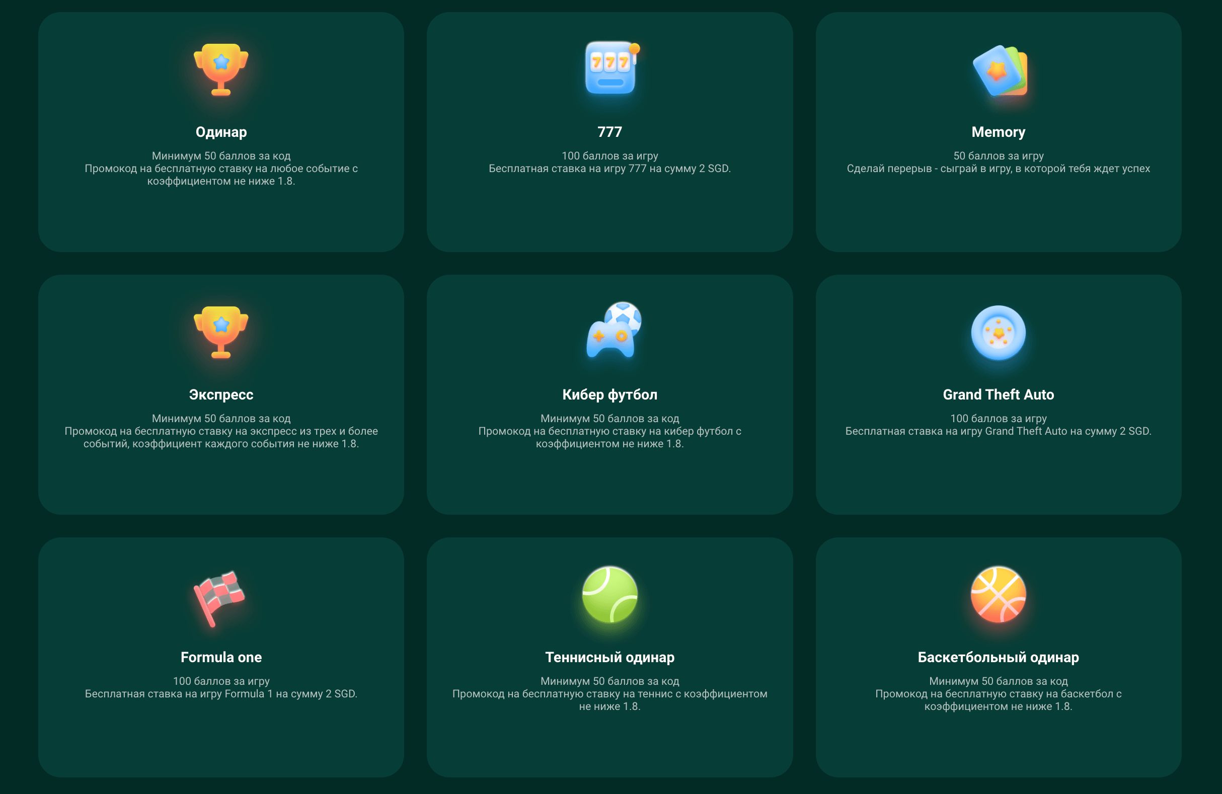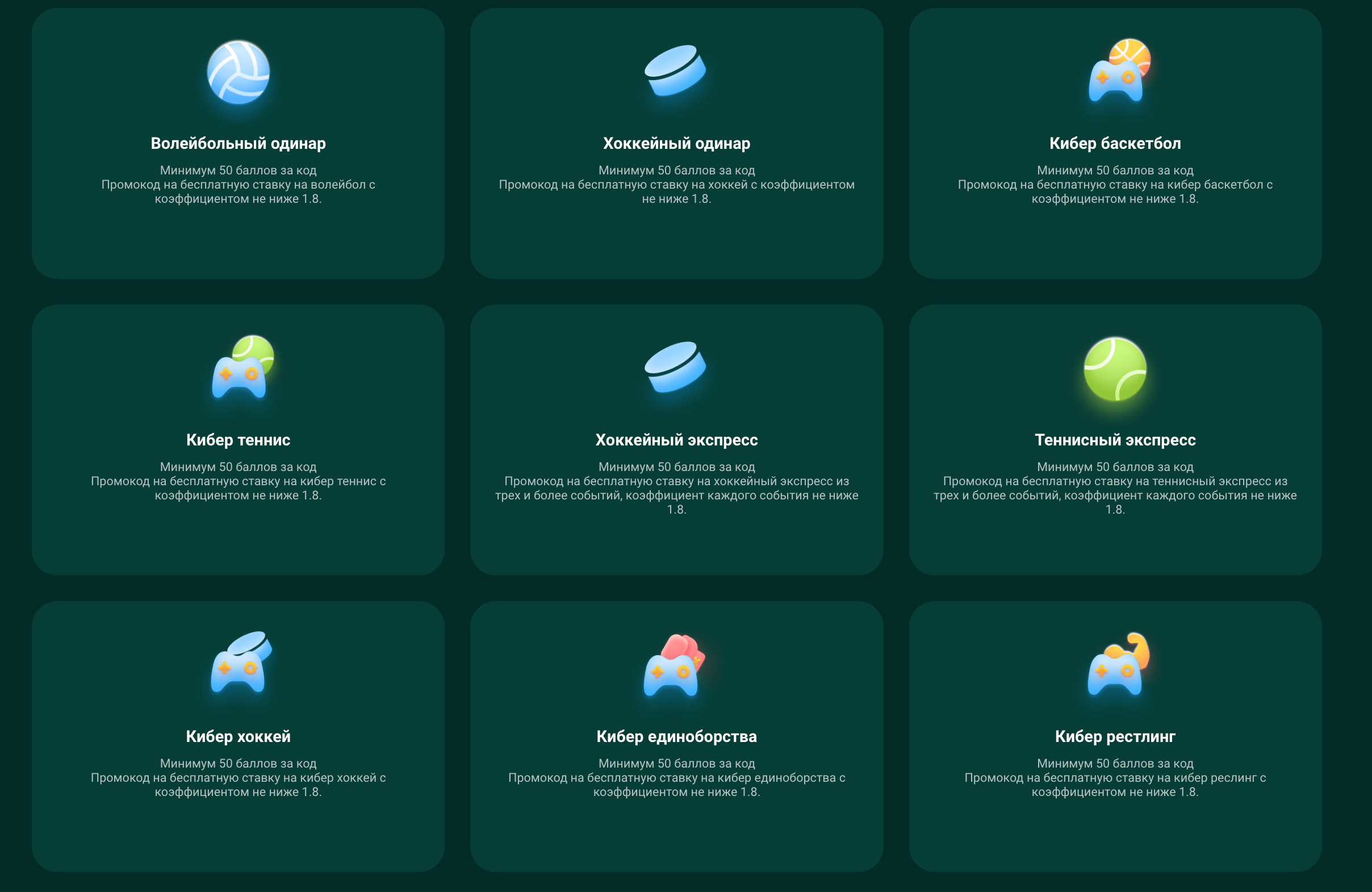 Как это работает: Каждый раз, когда вы делаете ставку в одной из четырех категорий (киберспорт, игры, спорт, ставки), вы накапливаете бонусные баллы. Шкала прогресса будет отображаться в вашем личном кабинете, в соответствующем разделе. Накопив достаточное количество бонусов, вы можете потратить их на один из 29 промо-кодов.